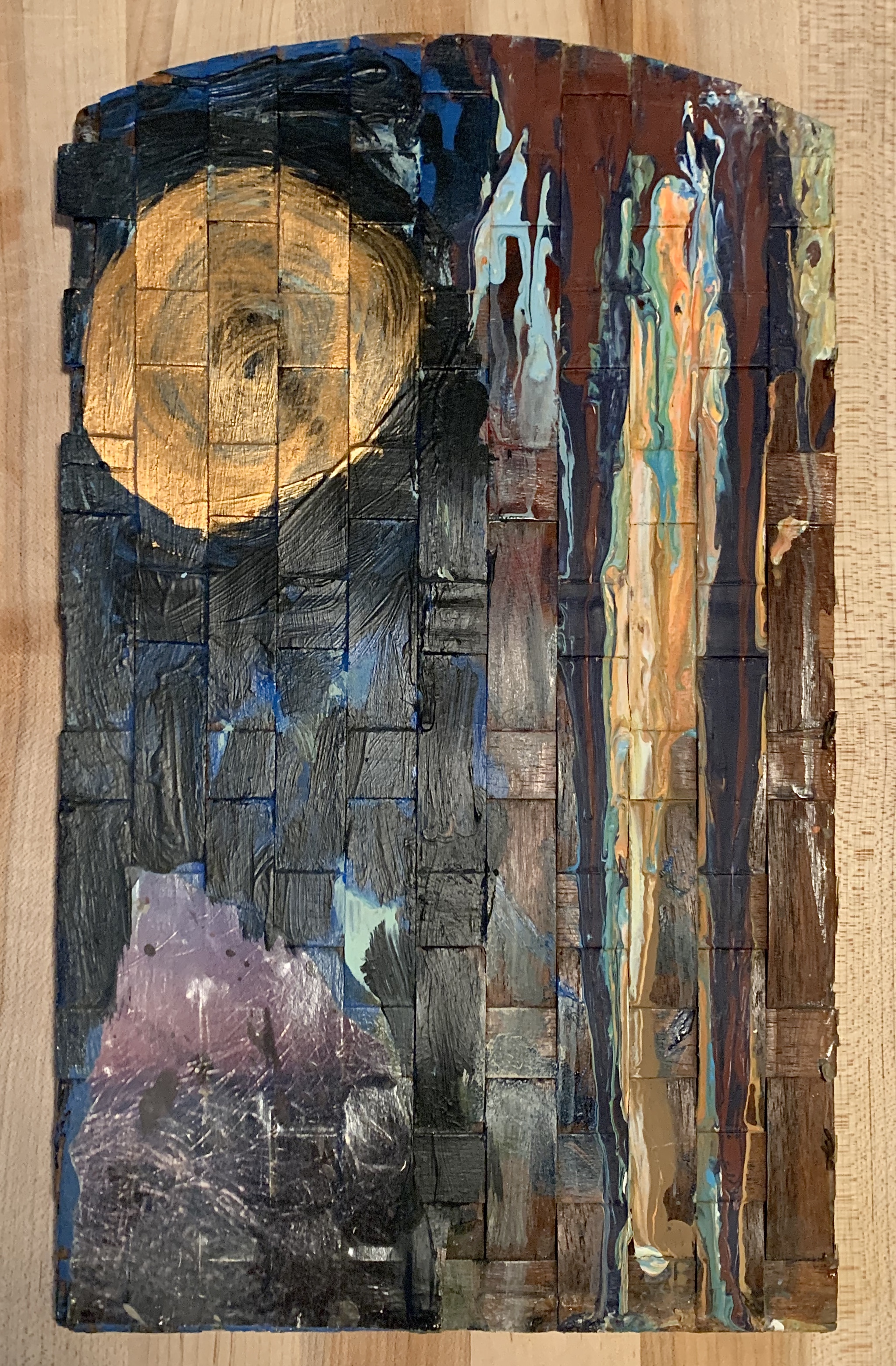 Mixed media on woven wood panel